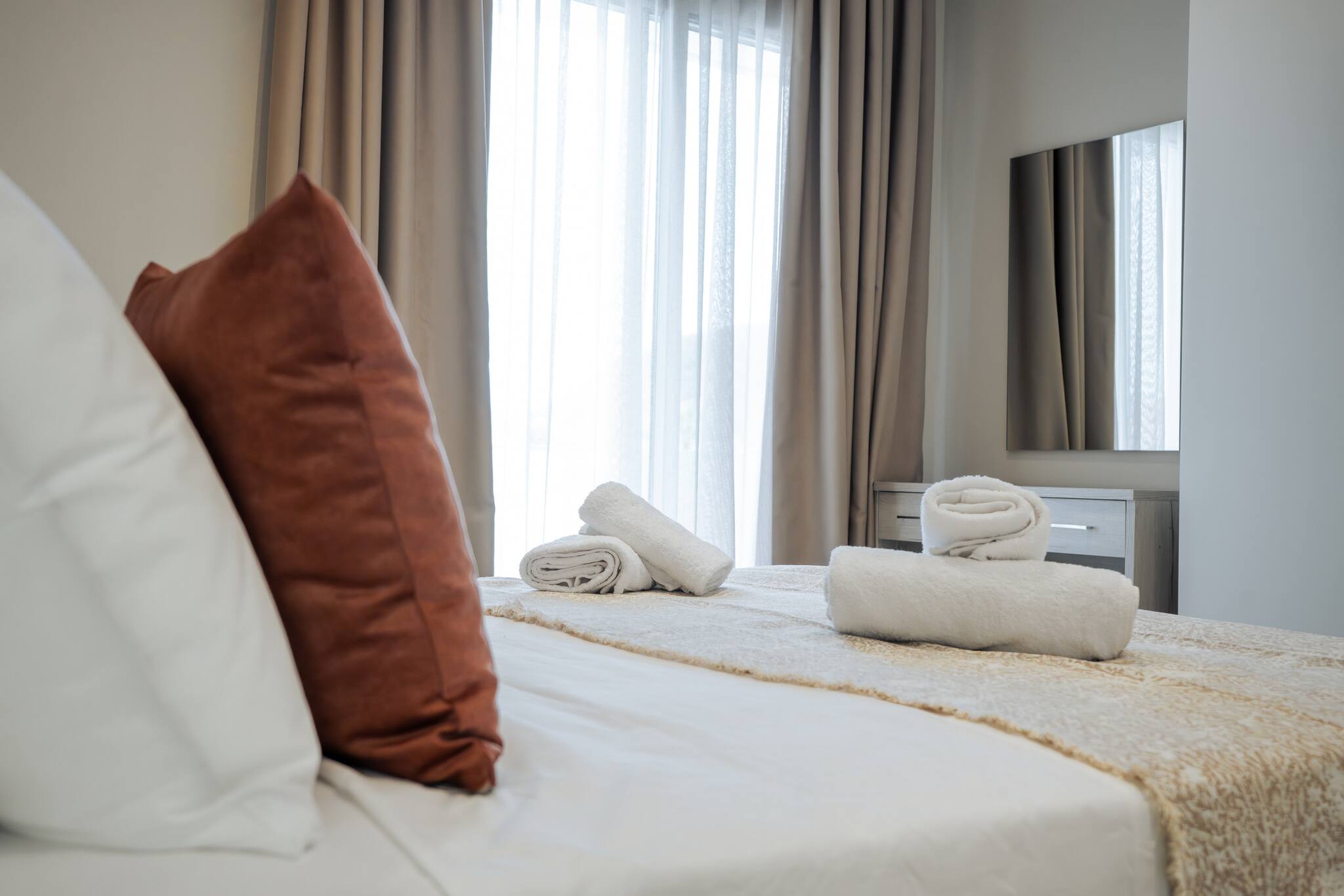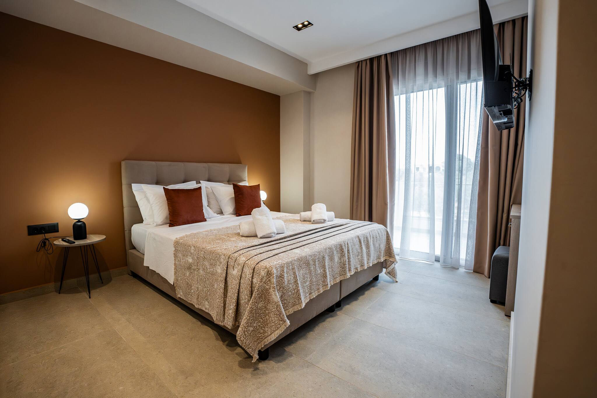 Phōs, can comfortably accommodate up to five guests(four in real beds and one in a folding bed) making it an ideal choice for couples, small families, or friends. With its central location, guests will have easy access to various attractions, restaurants, cafes, and shops, allowing them to make the most of their stay in the Island.