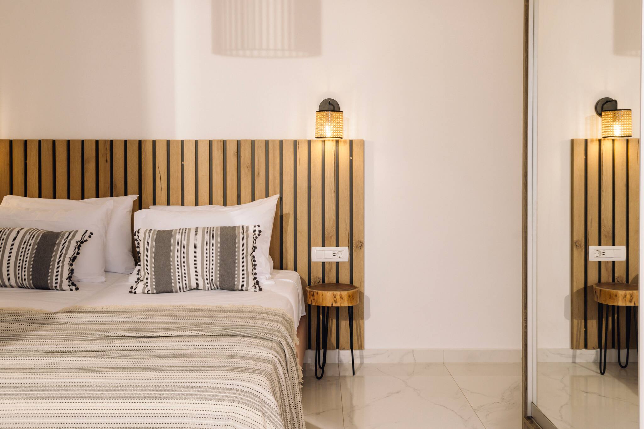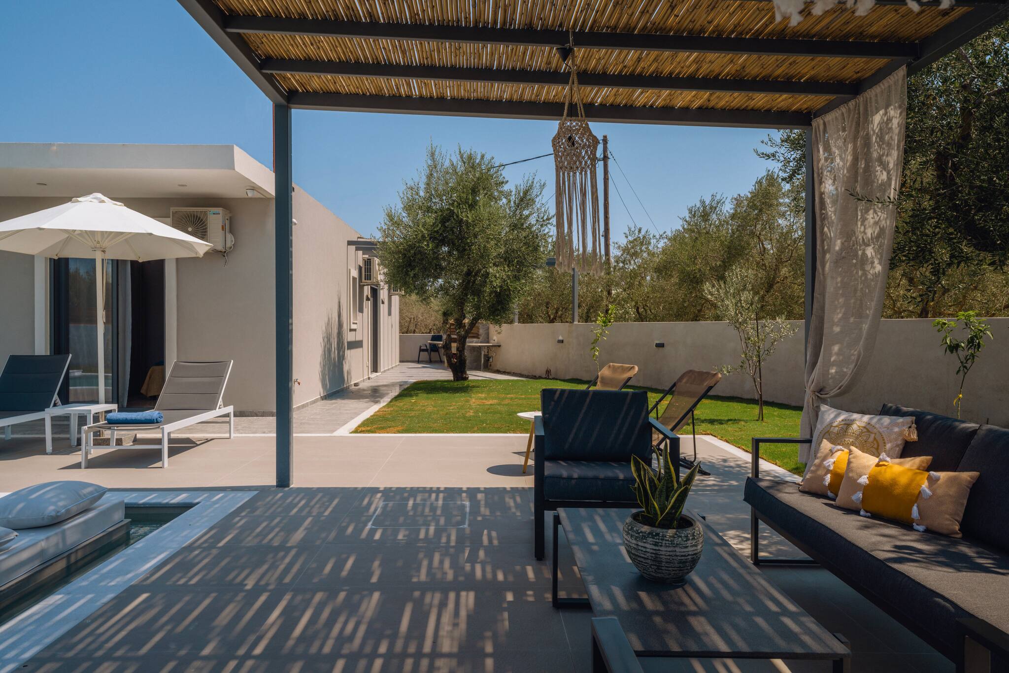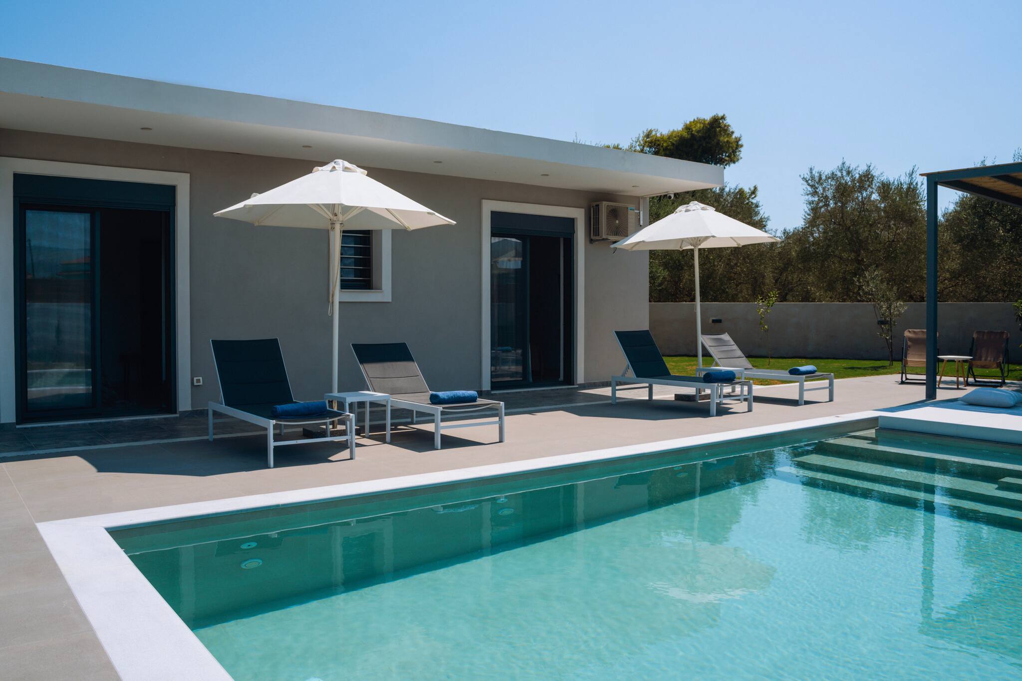 A Brand new, Xenia Villa is a spacious and centrally located retreat, offering 120 square meters of modern and comfortable living space. The villa features 3 bedrooms, 2 bathrooms(which one of them is En - suite bathroom on the first bedroom) making it ideal for families or groups of friends and can comfortably accommodate up to 6 guests in real beds and an additional 2 guests could sleep in the living room sofa plus folding bed upon request. Αll areas of the villa are air-conditioned, ensuring a comfortable temperature throughout your stay.