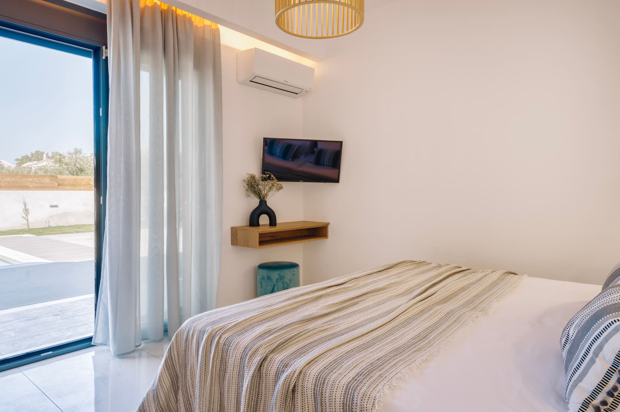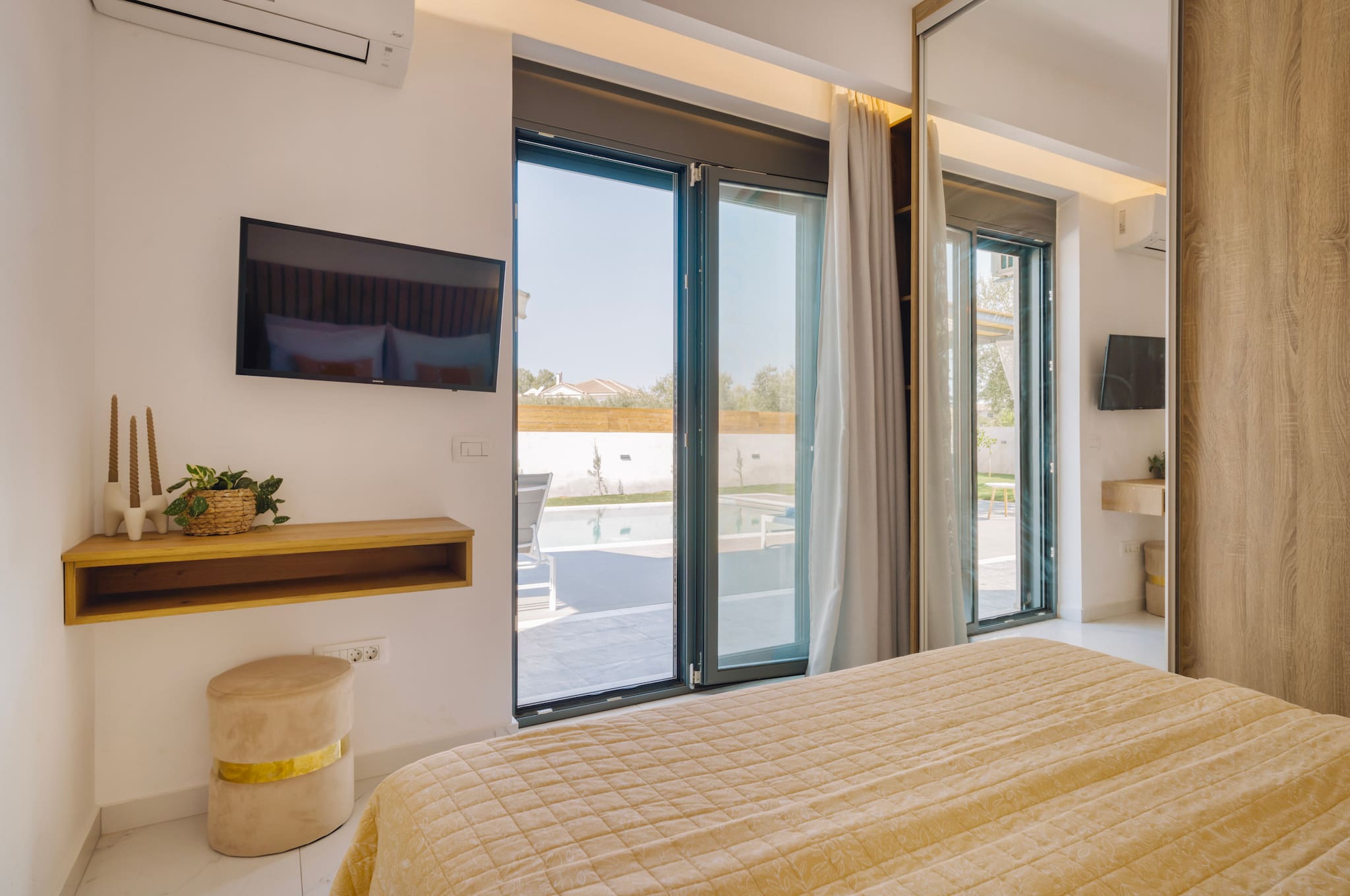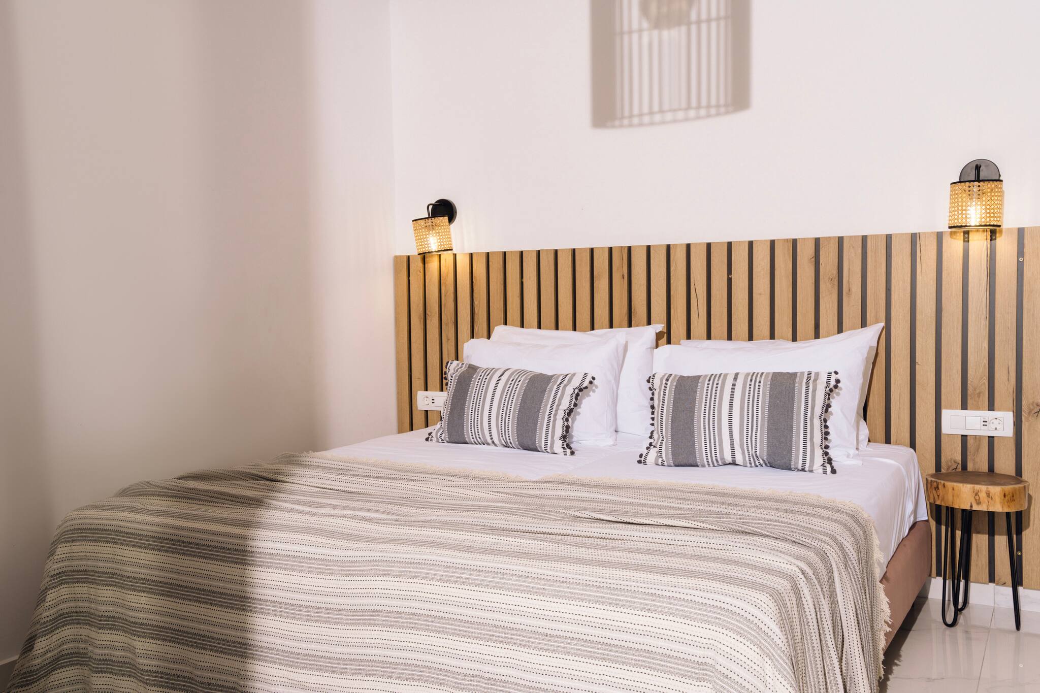 A Brand new, Xenia Villa is a spacious and centrally located retreat, offering 120 square meters of modern and comfortable living space. The villa features 3 bedrooms, 2 bathrooms(which one of them is En - suite bathroom on the first bedroom) making it ideal for families or groups of friends and can comfortably accommodate up to 6 guests in real beds and an additional 2 guests could sleep in the living room sofa plus folding bed upon request. Αll areas of the villa are air-conditioned, ensuring a comfortable temperature throughout your stay.