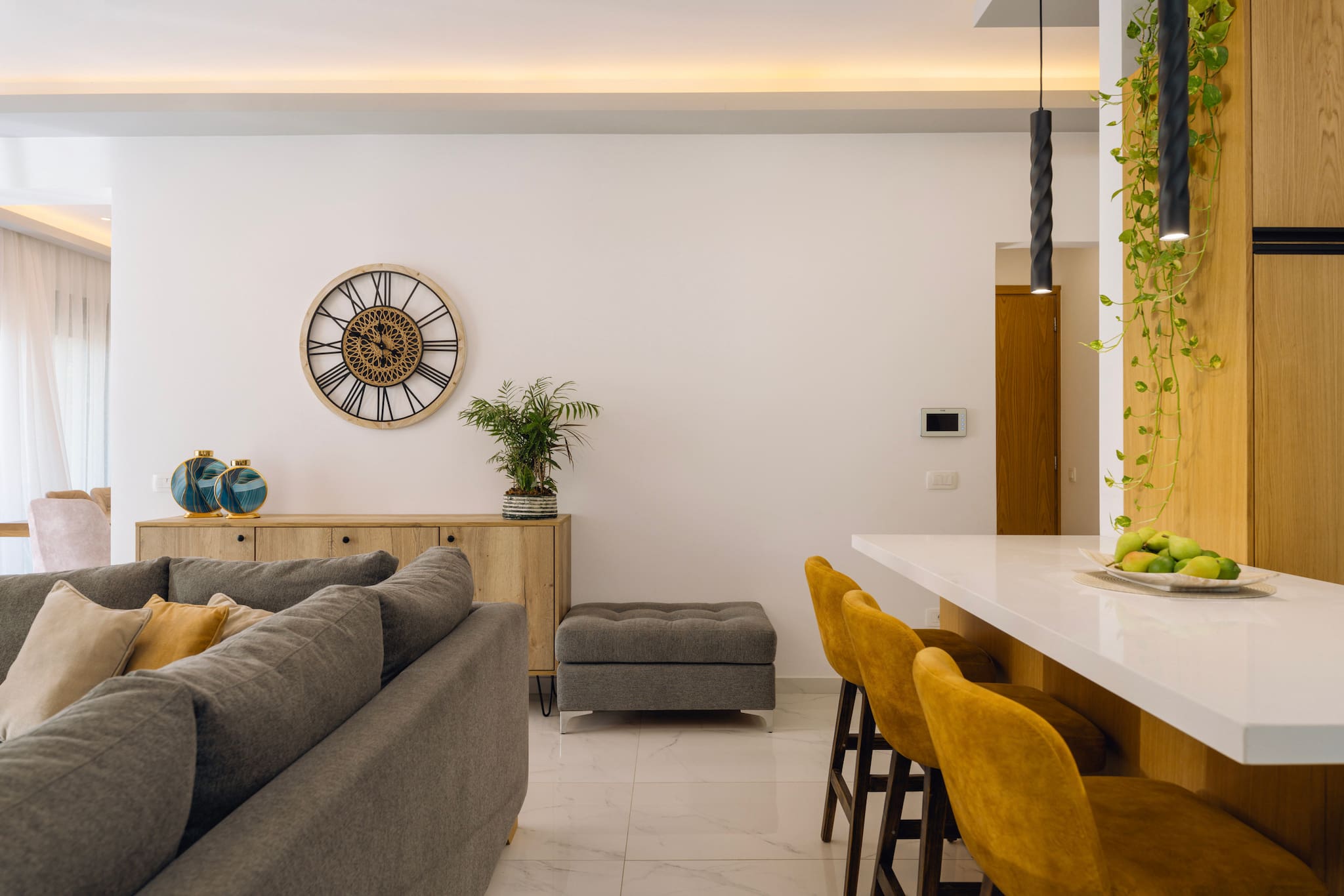 The first bedroom boasts a spacious layout with a cozy king size 180x200 mattress. The room is tastefully decorated with modern furnishings, including bedside tables, lamps, and a wardrobe for your convenience, and an En - suite bathroom. The second bedroom is equally inviting, featuring a generous queen size 160x200 mattress that promises utmost comfort. You'll find ample storage space with a wardrobe and additional amenities to make your stay as comfortable as possible. The third bedroom is perfect for solo travelers or children, with a comfortable two beds with 90x200 mattresses (can convert as a double bed upon request).