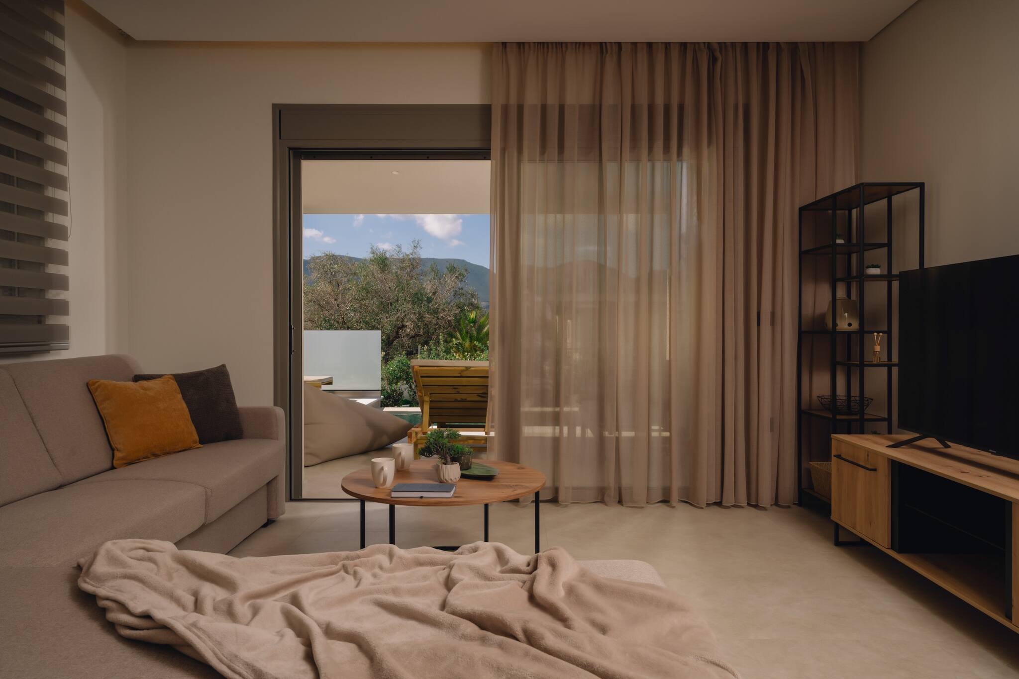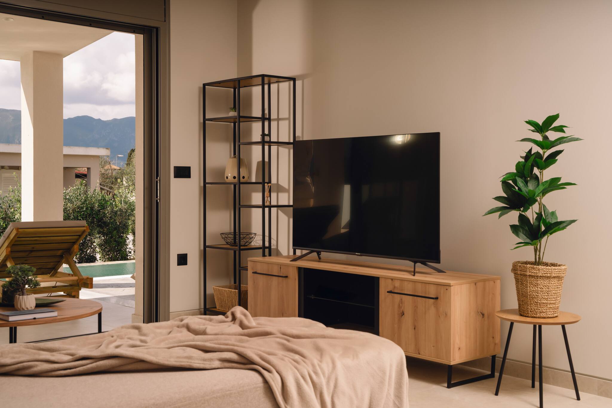 A Brand new, Villa Asimina is a spacious and Serene located retreat, offering 110 square meters of modern and comfortable living space. The villa features 3 bedrooms, 2 bathrooms(which one of them is En - suite bathroom) making it ideal for families or groups of friends and can comfortably accommodate up to 6 guests in real beds and an additional 2 guests could sleep in the living room sofa plus folding bed upon request. Αll areas of the villa are air-conditioned, ensuring a comfortable temperature throughout your stay.